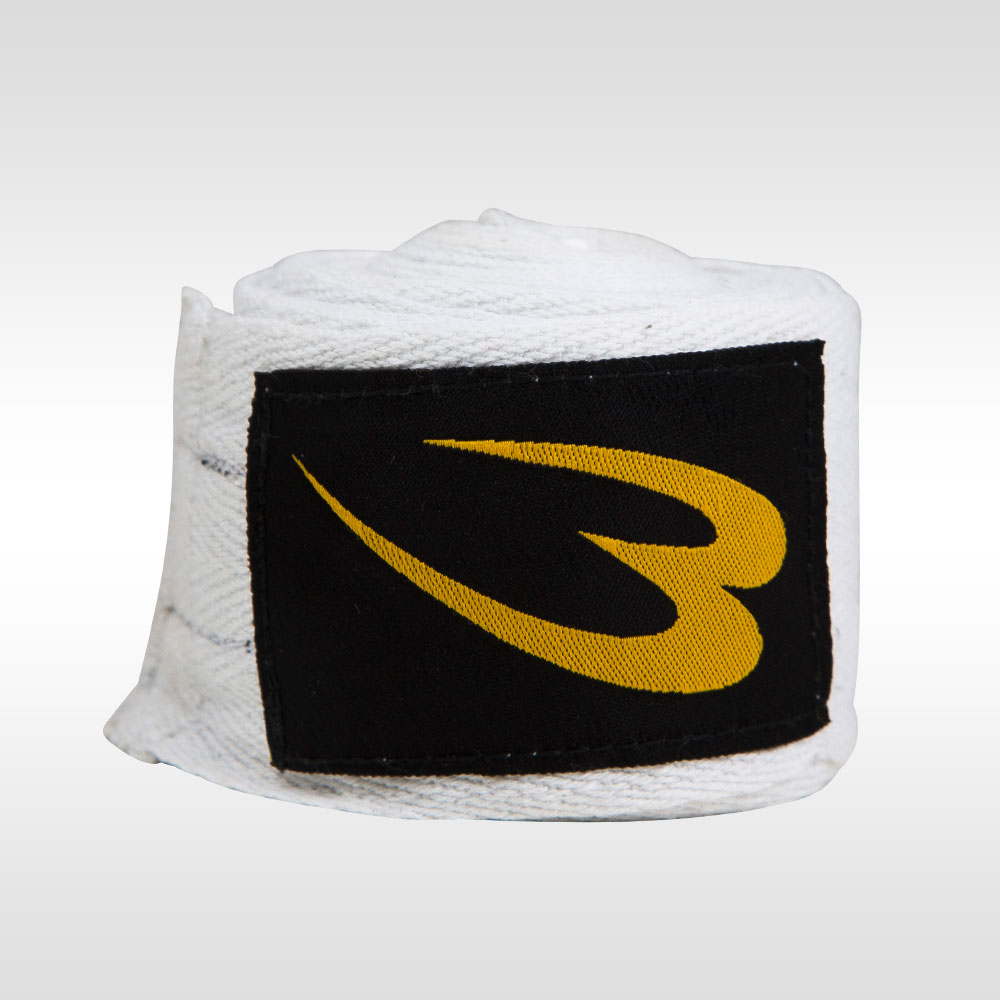グローブ内を清潔に保ち、拳を固め守るバンテージ。初心者からプロアスリートまで愛用される仕様。安定性を重視した非伸縮タイプ。ホワイトとブラックの2色展開。